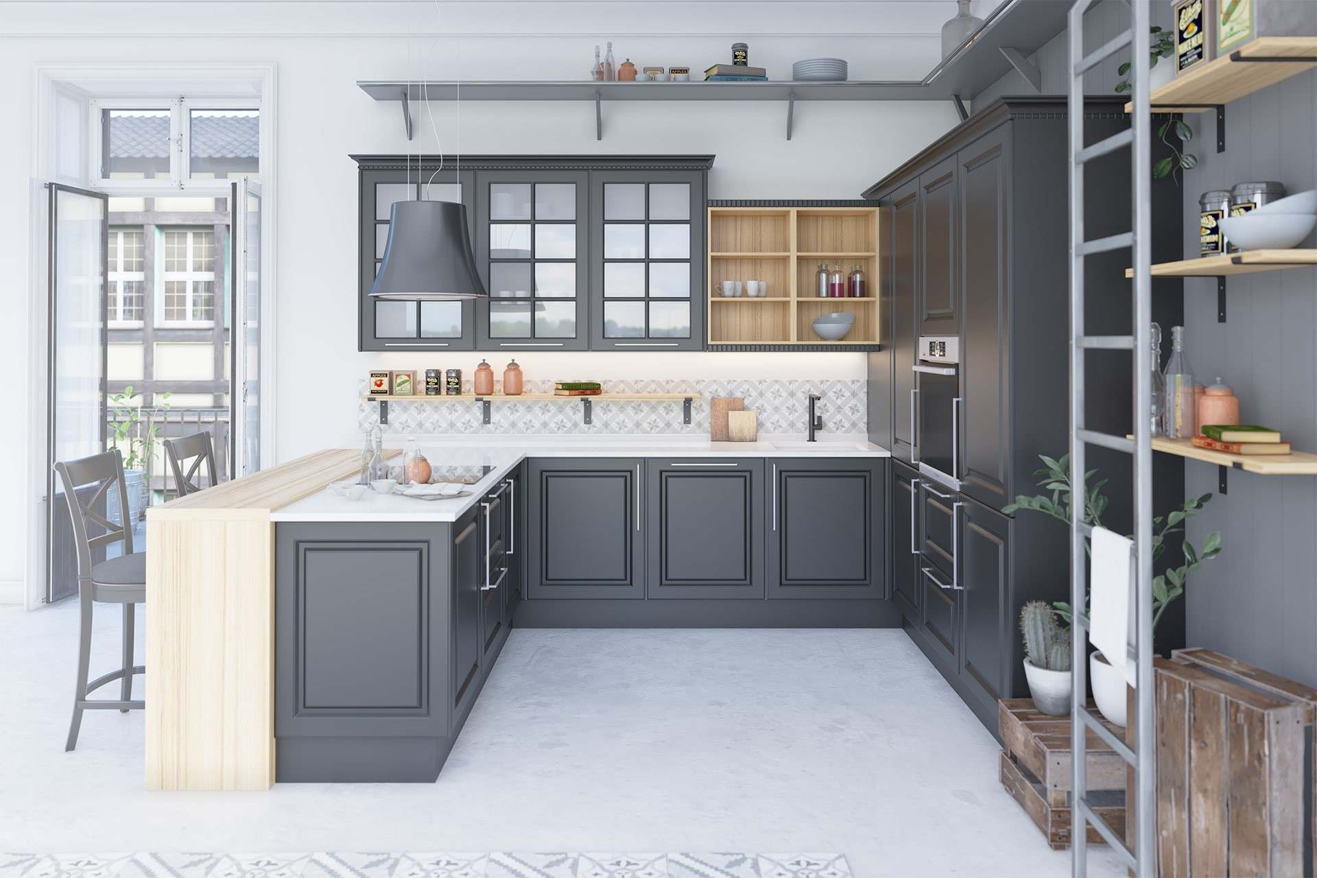 Преимущества черной кухни с деревянной столешницей
